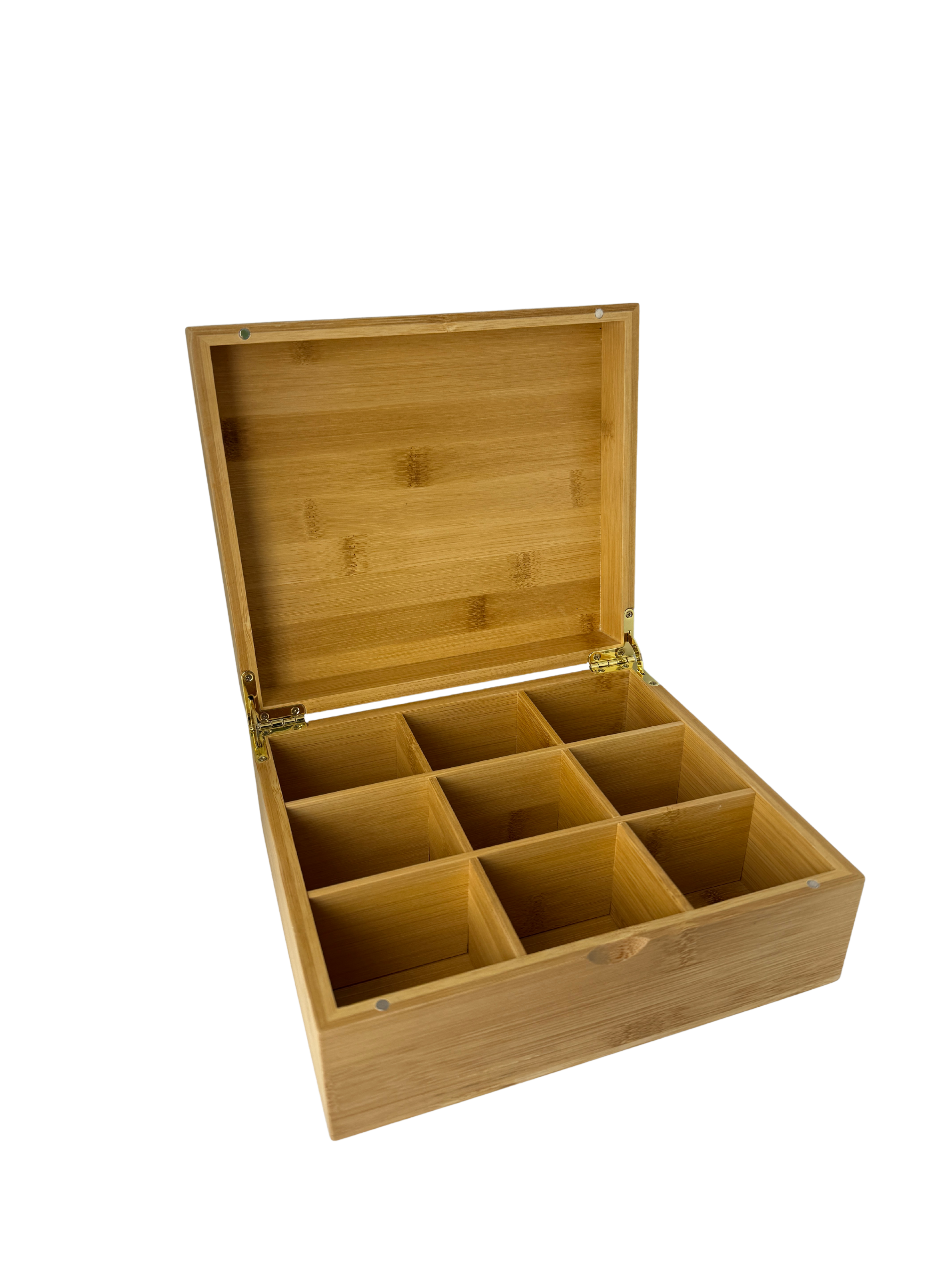 Presentatiekist voor thee met 9 vakjes.