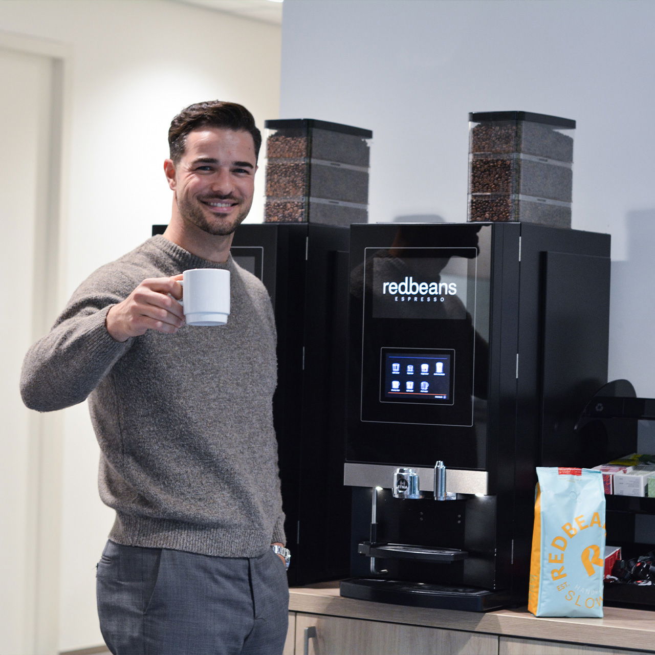 Applied Medical liet vier koffieautomaten testen om de beste keuze te maken. “Wij hebben een smaaktest gedaan met vier verschillende koffievoorzieningen, inclusief Redbeans,” vertelt Freddy Botterblom. “We hebben criteria opgesteld waar de machines, de koffie en het bedrijf aan moesten voldoen. Daar kwamen vier partijen uit.” Alle medewerkers, van verschillende afdelingen, beoordeelden de koffie volledig op smaak. “Het ging echt puur om de smaak. We hebben de merken niet benoemd, alleen een anonieme A, B, C of D. Dat maakte het eerlijk,” legt Freddy uit. “We hebben Bronze en Gold getest. Beiden werden goed ontvangen, maar Bronze kwam er uiteindelijk het beste uit. Het is gewoon een hele fijne, zachte koffie en ook perfect voor cappuccinoβs en latteβs. Iedereen was daar heel happy mee.”