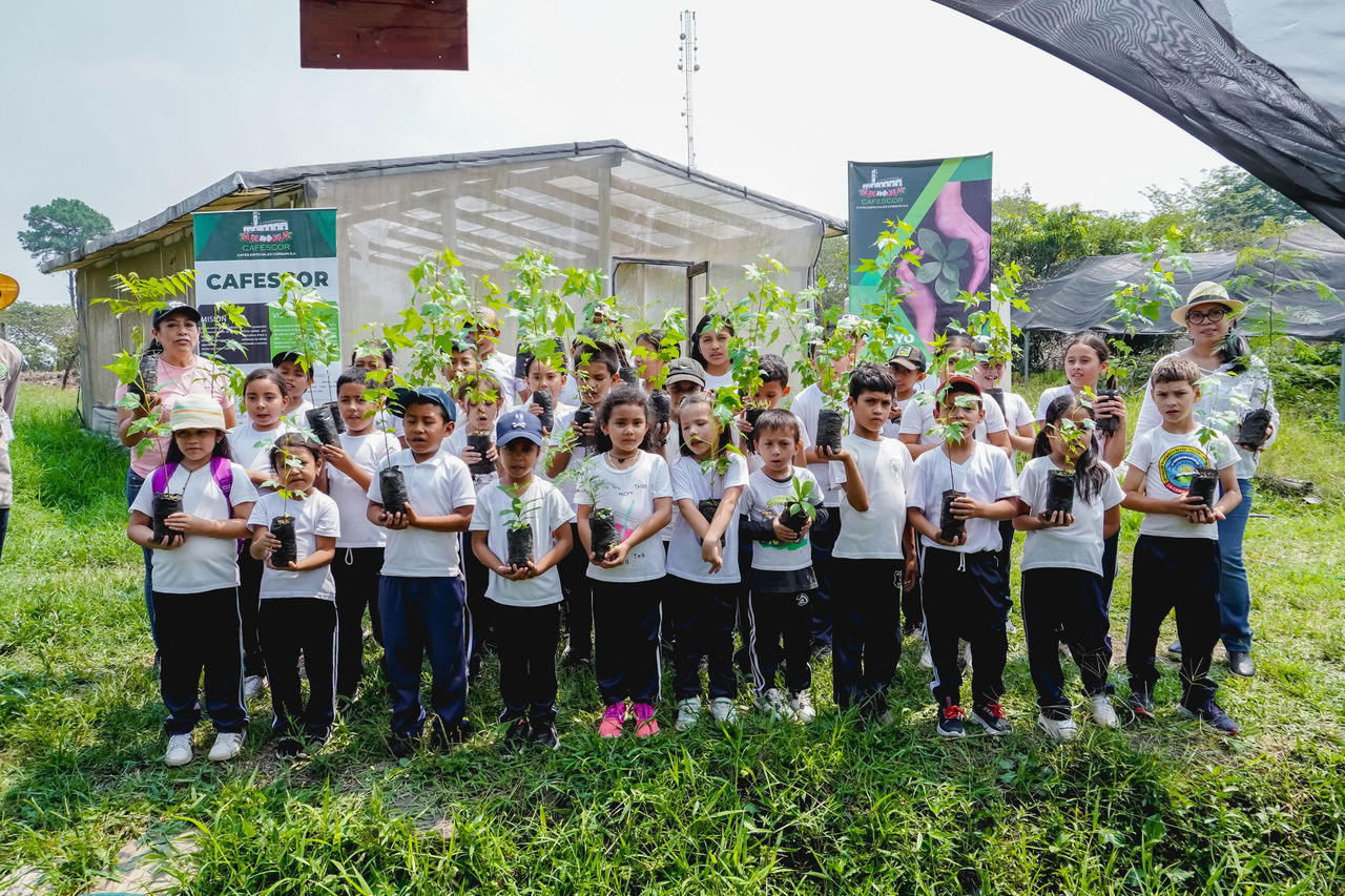 Cafescor ondersteunt jonge producenten met speciale scholen waar ze leren over agro-ecologische technieken. Zo versterken ze biodiversiteit en bodemgezondheid – onmisbaar voor een toekomstbestendige koffieproductie.